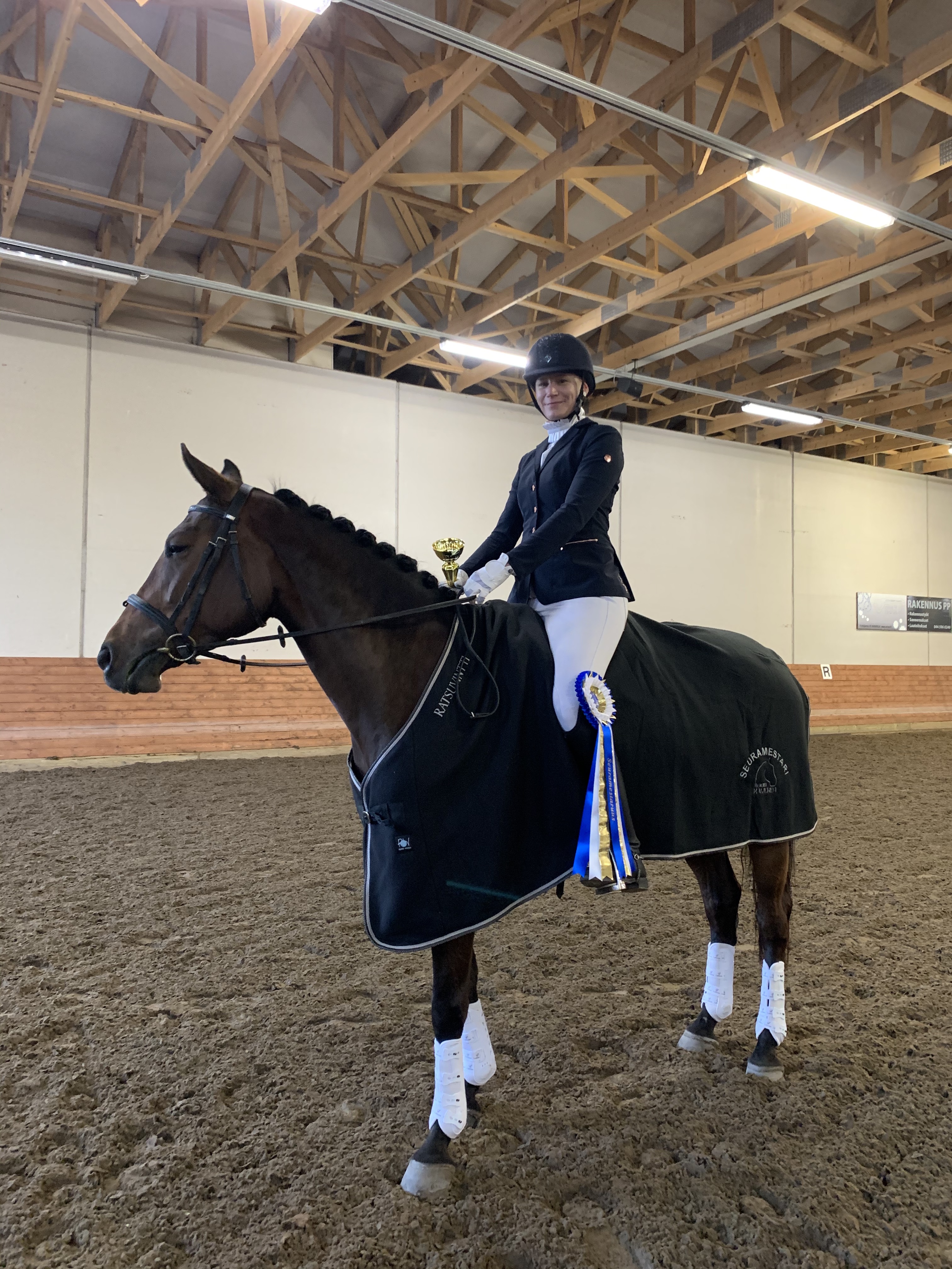 Molempien seuramestaruuksien ratkaisu jäi kilpailupäivien viimeisten ratsukoiden suoritusten varaan. Lauantain lopuksi seurakoulumestariksi kruunattiin Tiina Tähkälä ja M’s Tin Tin (He B:4 68,068%), ja sunnuntaina Viivi Mikkola ja Golca varmistivat tittelin 90 cm luokan onnistumisella. Seura onnittelee uusia mestareita ja erityisen lämmin kiitos mestariratsujen palkintoloimista Ratsuvintti :lle ja Ratsutila Kawerdalle kuukauden käyttöoikeudesta ratsastusalueille.